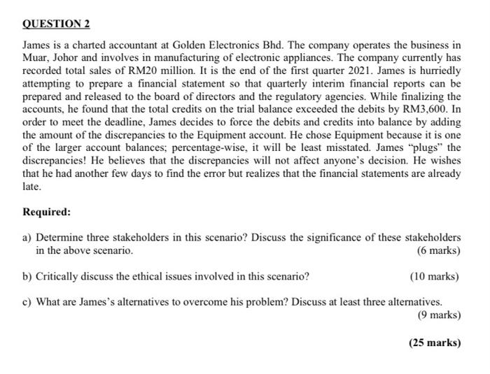 Solved Question 2 James Is A Charted Accountant At Golden Chegg Com