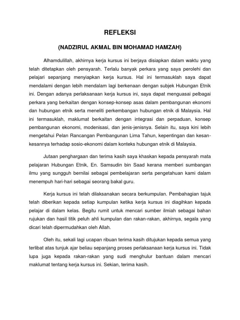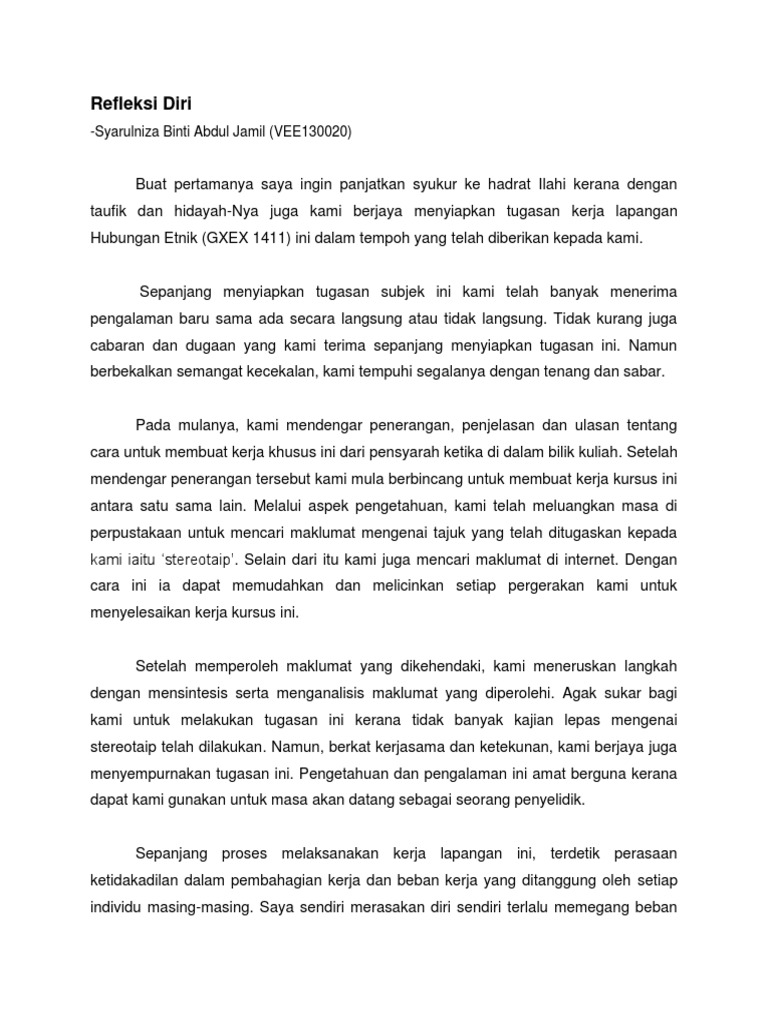 Laporan Reflektif Laporan Reflektif 1 Hubungan Etnik Merupakan Sebuah Subjek Yang Mendalami Studocu
